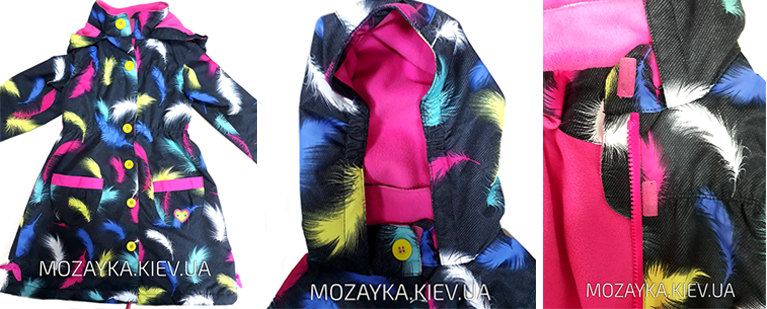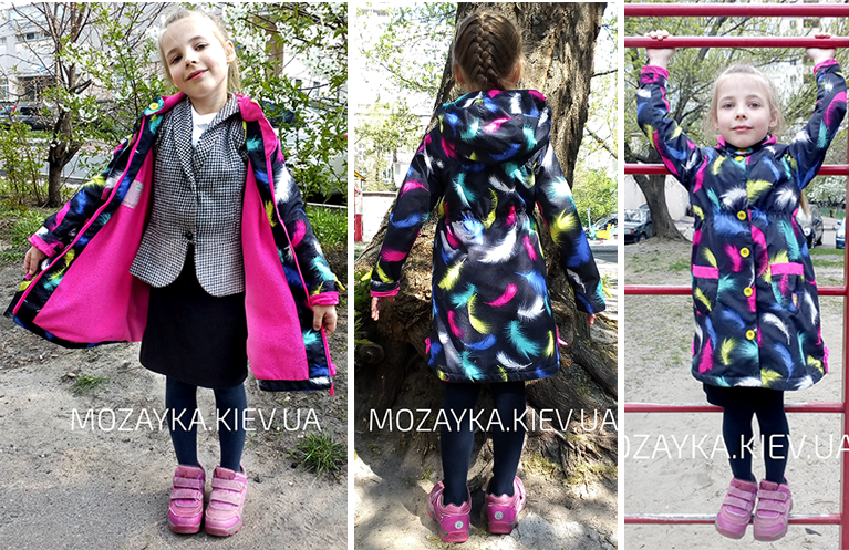 Впервые решили купить дочке плащ, ещё толком не будучи знакомыми с одеждой этой марки, ведь тогда только начали работать с ними. Плащик привлек наше внимание, конечно, бесподобной расцветкой: яркие разноцветные перышки на темном фоне выглядят как настоящие. Они приглянулись и ребенку, и нам, родителям, так как мы считаем, что яркая одежда на ребенке – это не только весело, но и в какой-то мере безопасно. Практичный и удобный крой также поспособствовал нашему выбору, поскольку позволяет надеть под него практически любые варианты гардероба: брюки, джинсы, юбки, платья…