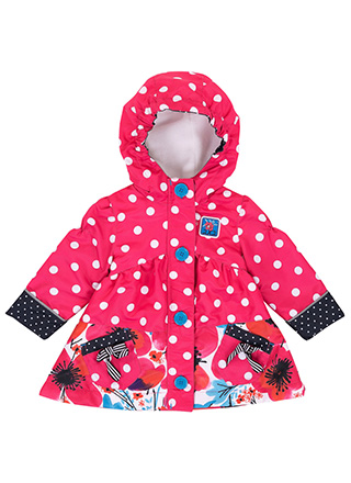 Непродуваемый непромокаемый модный плащ на флисовом подкладе с капюшоном для девочки (+ шляпа). Deux par Deux коллекция *Сontre Vents Et Marees*. Акварельный цветочный принт комбинируется с принтом в горошек.
