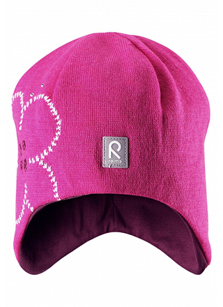 Шапка для девочки Reima Muhkea pink - очаровательная вязаная модель с фигурным краем, прикрывающим ушки и затылок. Внутри предусмотрена подкладка из хлопковой ткани. Декор - узор Цветок.
