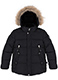 - Капюшон съемный. Внутри флисовая подкладка. Спереди застежка-липучка закрывающая горловину. Для максимального прилегания капюшона к голове ребенка внутри есть шторка на резиночке, которая защищает от задувания ветра. На ободочке густой мех.