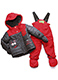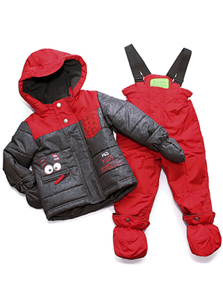 - плотность утеплителя: цельные комбинезон, грудь и спинка куртки – 270 гр; рукава и полукомбинезон – 230 гр; пинетки, рукавицы и капюшон – 160 гр;
