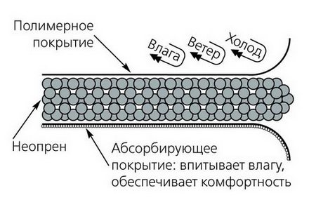 Вставки на пальто из водонепроницаемого, легкого, эластичного материала - неопрен - патентованная торговая марка компании DuPont. Неопрен отлично сохраняет тепло, устойчив к перепадам температур, механическим и химическим повреждениям, экологичен и безопасен.
