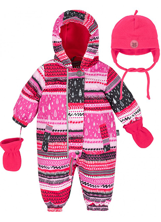 Артикул: W65-003 Комплектность: комбинезон, шапочка, варежки Состав: 100%Polyester+подкладка флис Температурный режим: +5...+15 Страна производитель: Канада Пол: Девочки;Малыши |