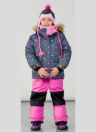- Низ куртки и штанин снабжены снего- и ветрозащитными «юбками». Вы не будете переживать, что вашему малышу попадет снег в ботинки или будет задувать в поясницу.