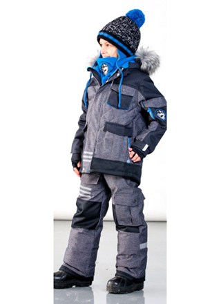 - Строгая расцветка костюма подойдет для детей постарше, а наличие многих асимметричных карманов и вставок наверняка придется по душе мальчугану.