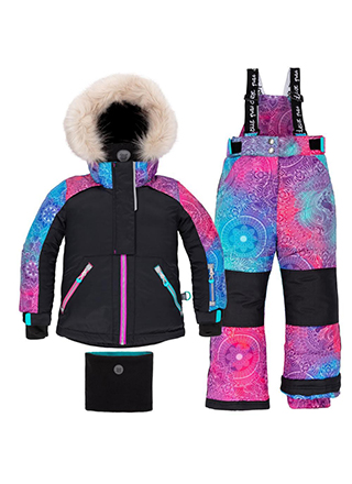 - Низ куртки и штанин снабжены снего- и ветрозащитными «юбками». Вы не будете переживать, что вашему малышу попадет снег в ботинки или будет задувать в поясницу.