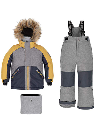 - Низ куртки и штанин снабжены снего- и ветрозащитными «юбками». Вы не будете переживать, что вашему малышу попадет снег в ботинки или будет задувать в поясницу.