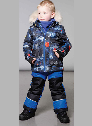 - Низ куртки и штанин снабжены снего- и ветрозащитными «юбками». Вы не будете переживать, что вашему малышу попадет снег в ботинки или будет задувать в поясницу.