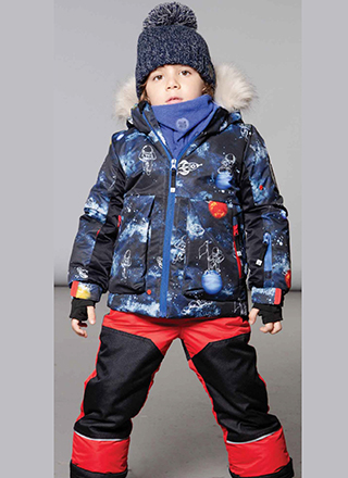 - Низ куртки и штанин снабжены снего- и ветрозащитными «юбками». Вы не будете переживать, что вашему малышу попадет снег в ботинки или будет задувать в поясницу.