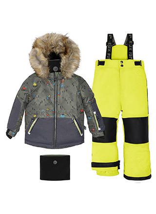 - Низ куртки и штанин снабжены снего- и ветрозащитными «юбками». Вы не будете переживать, что вашему малышу попадет снег в ботинки или будет задувать в поясницу.